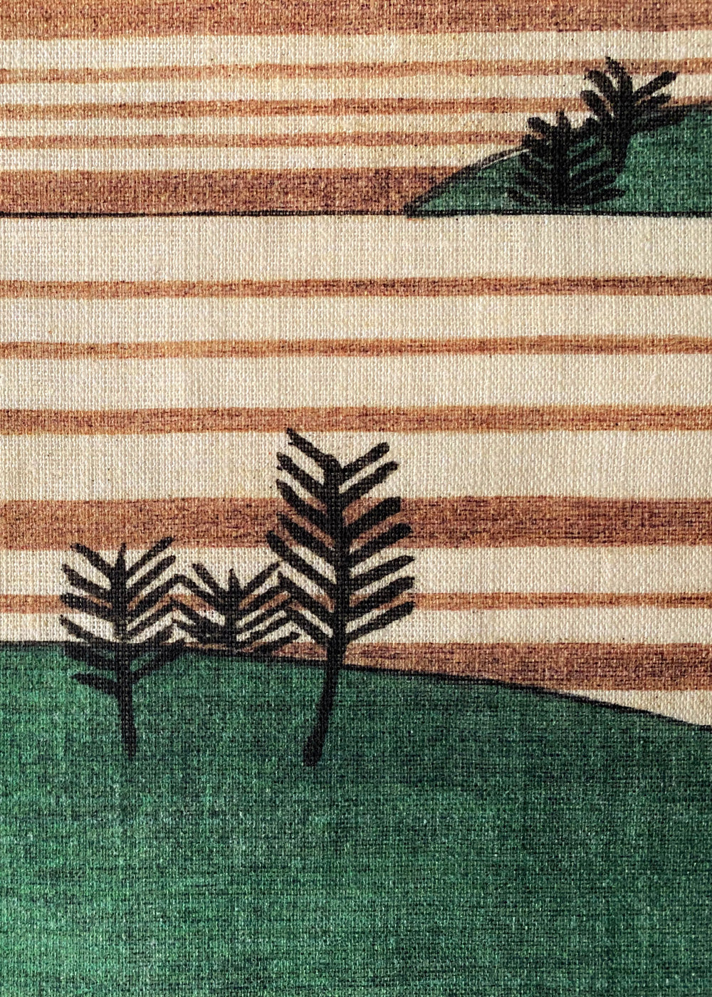 Green hills is based on a woodblock print by the Japanese artist Watanabe Shōtei.