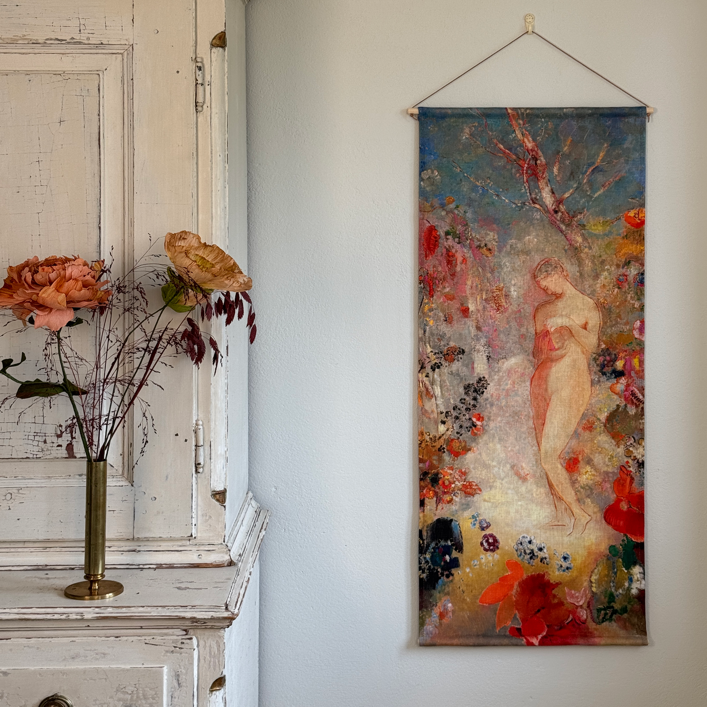 Pepperholms väggbonader trycks och sys i Finland på 100 % linne. De kan tvättas och strykas efter behov och kommer med en stång och ett läderband för upphängning. Våra väggbonader är handgjorda och det kan förekomma små variationer i storlek.